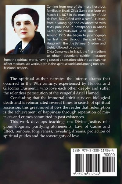 The spiritual author narrates the intense drama that occurred in the 19th century, experienced by Heloísa and Giácomo Dusmenil, who love each other deeply and suffer the relentless persecution of the vengeful Ariel Hamed. Concluding that the immortal spirit survives biological death and is reincarnated several times in search of spiritual ascension, this great novel shows the reader that redemption is the achievement of happiness through reparation of mistakes and crimes committed in past existences. This work develops teachings on: Divine Justice, religious dogmas, purifying atonements, Law of Cause and Effect, remorse, forgiveness, revealing dreams, protection of spiritual guides and the sovereignty of love.