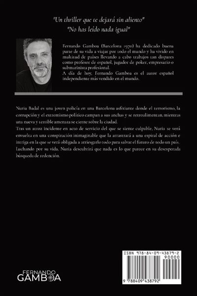FERNANDO GAMBOA (Barcelona, España, 1970) ha dedicado buena parte de su vida adulta a viajar por África. Asia y Latinoamérica, y vivido en diversos países llevando a cabo trabajos tan dispares como submarinista, profesor de español, empresario, jugador de póker o guía de aventura. A día de hoy, Fernando Gamboa es el autor independiente más leído en lengua castellana y uno de los más vendidos en todo el mundo.