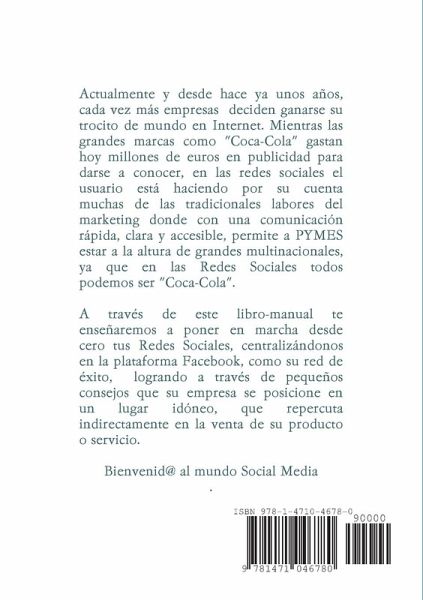Actualmente y desde hace ya unos años, cada vez más empresas deciden ganarse su trocito de mundo en Internet. Mientras las grandes marcas como "Coca-Cola" gastan hoy millones de euros en publicidad para darse a conocer, en las redes sociales el usuario está haciendo por su cuenta muchas de las tradicionales labores del marketing donde con una comunicación rápida, clara y accesible, permite a PYMES estar a la altura de grandes multinacionales, ya que en las Redes Sociales todos podemos ser "Coca-Cola". A través de este libro-manual te enseñaremos a poner en marcha desde cero tus Redes Sociales, centralizándonos en la plataforma Facebook, como su red de éxito, logrando a través de pequeños consejos que su empresa se posicione en un lugar idóneo, que repercuta indirectamente en la venta de su producto o servicio. Bienvenid@ al mundo Social Media