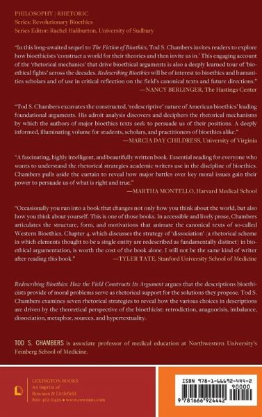 Tod S. Chambers argues that the descriptions bioethicists present of moral problems serve as rhetorical support for the solutions they propose and examines seven rhetorical strategies to reveal how the various choices in descriptions are driven by the theoretical perspective of the bioethicist.