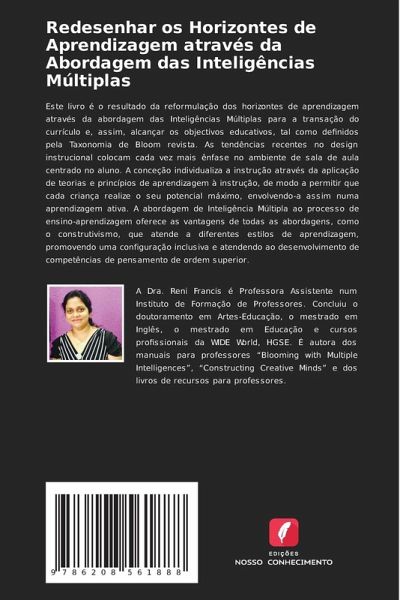 Este livro é o resultado da reformulação dos horizontes de aprendizagem através da abordagem das Inteligências Múltiplas para a transação do currículo e, assim, alcançar os objectivos educativos, tal como definidos pela Taxonomia de Bloom revista. As tendências recentes no design instrucional colocam cada vez mais ênfase no ambiente de sala de aula centrado no aluno. A conceção individualiza a instrução através da aplicação de teorias e princípios de aprendizagem à instrução, de modo a permitir que cada criança realize o seu potencial máximo, envolvendo-a assim numa aprendizagem ativa. A abordagem de Inteligência Múltipla ao processo de ensino-aprendizagem oferece as vantagens de todas as abordagens, como o construtivismo, que atende a diferentes estilos de aprendizagem, promovendo uma configuração inclusiva e atendendo ao desenvolvimento de competências de pensamento de ordem superior.
