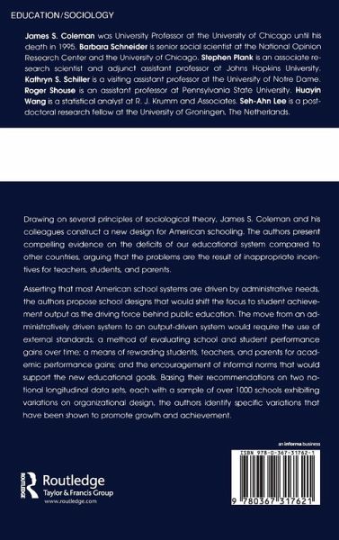 This book draws on several principles of sociological theory and constructs a new design for American schooling. It examines the organizational structure of public schools and explores the importance between family educational attainment and student test scores.