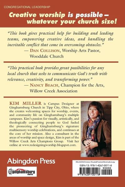 Kim Miller serves as Campus Designer at Ginghamsburg Church, in Tipp City Ohio, a suburb of Dayton. Kim creates experiences and environments for worship, events and community life on Ginghamsburg s multiple campuses. Her passion is connecting people to God on multiple levels--visually, artistically and theologically. This passion has fueled Ginghamsburg s signature multisensory worship celebrations, and continues to infuse her role as coach on the worship design team. Kim has ignited a movement to recruit, train and deploy teams of strong (unpaid) artist-builders to create engaging environments on a missional, mud n spit budget. She has crafted a new model for churches seeking to offer guest experiences that are current and meaningful. Many of these makeover projects can be viewed at