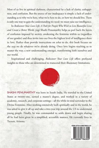 Most of us live in spiritual darkness, characterized by a lack of clarity, unhappiness, and confusion. But the source of our inadequacy is simple: a lack of understanding as to why we're here, what we're here to do, or how we should live. There is only one way to gain the understanding we need: we must raise our intelligence. In Rediscover Your Love Life: A Path for People Who Wish to Live Beautiful Lives and Create a Better World, yogi Shashi Penumarthy helps us peel back the layers of confusion imposed by society, awakening the feminine within us (regardless of our gender) and thus invite into our lives the highest level of intelligence there is: love. Rather than provide instructions on what to do, this book focuses on the way we do whatever we're already doing. Once love begins teaching us to master the way, a new understanding emerges, transforming both ourselves and our world. Inspirational and challenging, Rediscover Your Love Life offers profound insights to those who are determined to transcend their illusionary limitations.