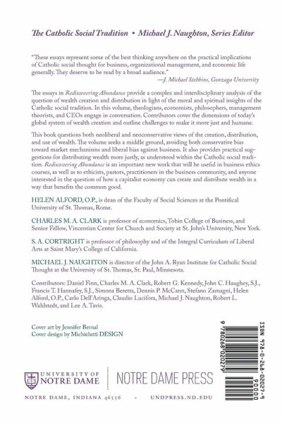 "These essays represent some of the best thinking anywhere on the practical implications of Catholic social thought for business, organizational management, and economic life generally. They deserve to be read by a broad audience." -J. Michael Stebbins, Gonzaga University The essays in Rediscovering Abundance provide a complex and interdisciplinary analysis of the question of wealth creation and distribution in light of the moral and spiritual insights of the Catholic social tradition. In this volume, theologians, economists, philosophers, management theorists, and CEOs engage in conversation. Contributors cover the dimensions of today's global system of wealth creation and outline challenges to make it more just and humane. This book questions both neoliberal and neoconservative views of the creation, distribution, and use of wealth. The volume seeks a middle ground, avoiding both conservative bias toward market mechanisms and liberal bias against business. It also provides practical suggestions for distributing wealth more justly, as understood within the Catholic social tradition. Rediscovering Abundance is an important new work that will be useful in business ethics courses, as well as to ethicists, pastors, practitioners in the business community, and anyone interested in the question of how a capitalist economy can create and distribute wealth in a way that benefits the common good.