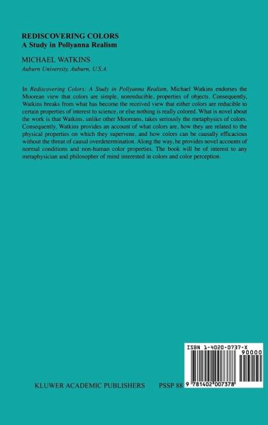 In Rediscovering Colors: A Study in Pollyanna Realism, Michael Watkins endorses the Moorean view that colors are simple, non-reducible, properties of objects. Consequently, Watkins breaks from what has become the received view that either colors are reducible to certain properties of interest to science, or else nothing is really colored. What is novel about the work is that Watkins, unlike other Mooreans, takes seriously the metaphysics of colors. Consequently, Watkins provides an account of what colors are, how they are related to the physical properties on which they supervene, and how colors can be causally efficacious without the threat of causal overdetermination. Along the way, he provides novel accounts of normal conditions and non-human color properties. The book will be of interest to any metaphysician and philosopher of mind interested in colors and color perception.
