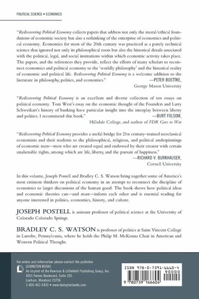 In this volume, Bradley C. S. Watson and Joseph Postell bring together some of America's most eminent thinkers on political economy in an attempt to reconnect the discipline of economics to larger discussions about the human good. The book shows how political ideas and economic theories can—and must—inform each other, and is essential reading for anyone interested in politics, economics, history, and culture.