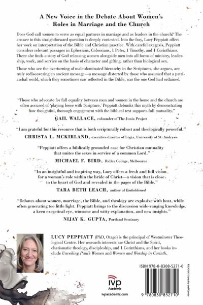 Does God call women to serve as equal partners in marriage and as leaders in the church? With careful exegetical work, Lucy Peppiatt considers relevant passages in Ephesians, Colossians, 1 Peter, 1 Timothy, and 1 Corinthians. There she finds a story of God releasing women alongside men into all forms of ministry, leadership, work, and service on the basis of character and gifting, rather than biological sex.