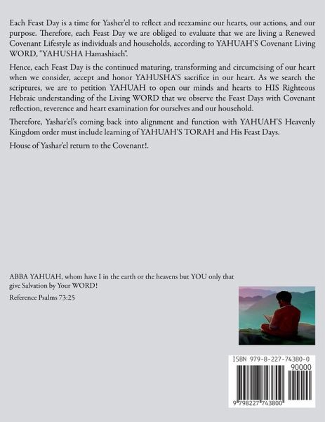 Each Feast Day is a time for Yasher'el to reflect and reexamine our hearts, our actions, and our purpose. Therefore, each Feast Day we are obliged to evaluate that we are living a Renewed Covenant Lifestyle as individuals and households, according to YAHUAH'S Covenant Living WORD, "YAHUSHA Hamashiach". Hence, each Feast Day is the continued maturing, transforming and circumcising of our heart when we consider, accept and honor YAHUSHA'S sacrifice in our heart. As we search the scriptures, we are to petition YAHUAH to open our minds and hearts to HIS Righteous Hebraic understanding of the Living WORD that we observe the Feast Days with Covenant reflection, reverence and heart examination for ourselves and our household. Therefore, Yashar'el's coming back into alignment and function with YAHUAH'S Heavenly Kingdom order must include learning of YAHUAH'S TORAH and His Feast Days. House of Yashar'el return to the Covenant!.