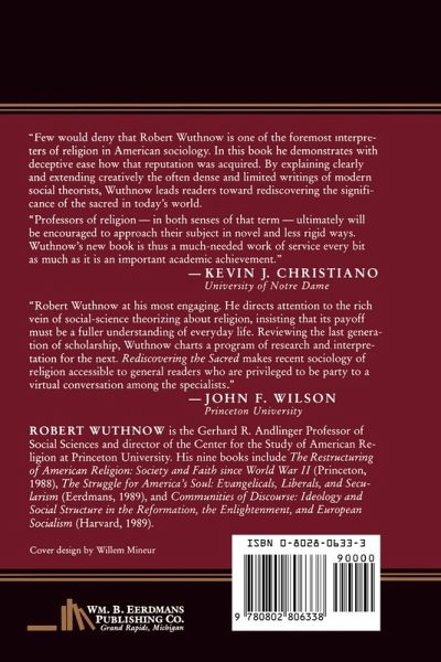 This is a print on demand book and is therefore non- returnable. Claiming that modern interest in the sacred remains constant over time but that the sacred continually manifests itself in changing forms, Wuthnow examines the main theoretical approaches toward religion that have emerged of late in the social sciences, and he shows how these approaches have moved away from the idea of linear secularization and can help explain the changing character and shifting location of the sacred in modern society.
