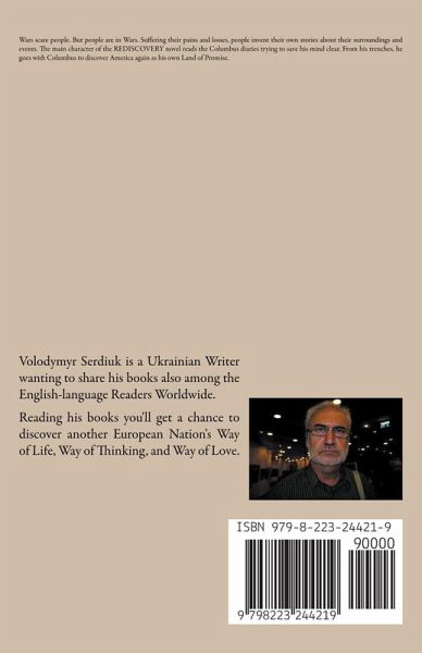 Wars scare people. But people are in Wars. Suffering their pains and losses, people invent their own stories about their surroundings and events. The main character of the REDISCOVERY novel reads the Columbus diaries trying to save his mind clear. From his trenches, he goes with Columbus to discover America again as his own Land of Promise.