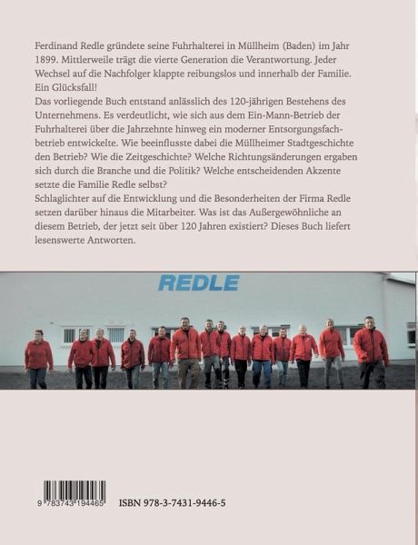 Ferdinand Redle gründete seine Fuhrhalterei in Müllheim (Baden) im Jahr 1899. Mittlerweile trägt die vierte Generation die Verantwortung. Jeder Wechsel auf die Nachfolger klappte reibungslos und innerhalb der Familie. Ein Glücksfall!Das vorliegende Buch entstand anlässlich des 120-jährigen Bestehens des Unternehmens. Es verdeutlicht, wie sich aus dem Ein-Mann-Betrieb der Fuhrhalterei über die Jahrzehnte hinweg ein moderner Entsorgungsfachbetrieb entwickelte. Wie beeinflusste dabei die Müllheimer Stadtgeschichte den Betrieb? Wie die Zeitgeschichte? Welche Richtungsänderungen ergaben sich durch die Branche und die Politik? Welche entscheidenden Akzente setzte die Familie Redle selbst? Schlaglichter auf die Entwicklung und die Besonderheiten der Firma Redle setzen darüber hinaus die Mitarbeiter. Was ist das Außergewöhnliche an diesem Betrieb, der jetzt seit über 120 Jahren existiert? Dieses Buch liefert lesenswerte Antworten.