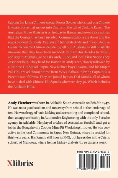 Captain Jin Li is a Chinese Special Forces Soldier who is part of a Chinese Invasion force that moves into Cairns on the tail of Cyclone Karen. The Australian Prime Minister is on holiday in Hawaii and no-one else notices that the Country has been invaded. Communications are down and the roads blocked by floods. Captain Jin befriends Andy and his son Jude in Cairns. When the Chinese decide to pull out, Australia is still blissfully unaware that they have been invaded. Captain Jin decides to defect, and stay in Australia, so he asks Andy, Jude, and local First Nations boy Jason for help. They head for Darwin in Andy's car, closely followed by a Chinese Hit Squad. Papua New Guinea boys Tibu, and his Sniper Pal Tibu travel through time from WW2 Rabaul to bring Captain Li's Parents out of China. They are joined by two Thai Monks, all of whom have to deal with Chinese Hit Squads wherever they go. Which includes the Adelaide Hills.