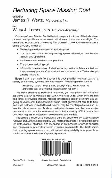 This book is a follow-on to the now standard text and reference, Space Mission Analysis and Design , also edited by Drs. Wertz and Larson. It is required reading for professionals, students, and managers in astronautics or space sciences and managers or scientists involved in space experiments. This book shows that reducing space mission cost, without reducing reliability, is as possible as it is important for the future of space exploration.