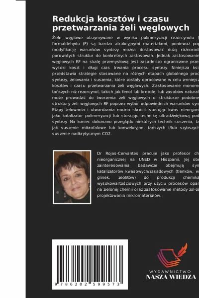 ¿ele w¿glowe otrzymywane w wyniku polimeryzacji rezorcynolu (R) i formaldehydu (F) s¿ bardzo atrakcyjnymi materiäami, poniewä poprzez modyfikacj¿ warunków syntezy mo¿na dostosowä du¿¿ ró¿norodno¿¿ porowatych struktur do konkretnych zastosowä. Jednak zastosowanie ¿eli w¿glowych RF na skal¿ przemys¿ow¿ jest zasadniczo ograniczone przez ich wysoki koszt i d¿ugi czas trwania procesu syntezy. Niniejsza ksi¿¿ka przedstawia strategie stosowane na ró¿nych etapach globalnego procesu, syntezy, ¿elowania i suszenia, które zostäy opracowane w celu zmniejszenia kosztów i czasu przetwarzania ¿eli w¿glowych. Zastosowanie monomerów täszych ni¿ rezorcynol, takich jak fenol lub krezole, lub zasobów naturalnych mo¿e prowadzi¿ do tworzenia ¿eli w¿glowych o strukturze podobnej do struktury ¿eli w¿glowych RF poprzez wybór odpowiednich warunków syntezy. Etapy ¿elowania i utwardzania mo¿na skróci¿ stosuj¿c kwas nieorganiczny jako katalizator polimeryzacji lub stosuj¿c technik¿ ultrad¿wi¿kow¿ podczas syntezy. Na koniec dokonano przegl¿du niektórych technik suszenia, takich jak suszenie mikrofalowe lub konwekcyjne, täszych i/lub szybszych ni¿ suszenie nadkrytycznym CO2.