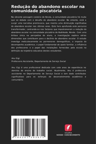 Na vibrante paisagem costeira de Kerala, a comunidade piscatória há muito que se debate com o desafio do abandono escolar. No entanto, está a surgir uma narrativa promissora, que mostra uma diminuição significativa do abandono escolar nos últimos anos. Este livro aprofunda este percurso transformador, centrando-se nos factores que impulsionaram a redução do abandono escolar na comunidade piscatória de Kozhikode, Kerala. Com uma ênfase única na perspetiva do aluno, a investigação explora várias dimensões que contribuem para o declínio do abandono escolar. O estudo investiga meticulosamente os pormenores demográficos, o impacto do desempenho académico, o papel fundamental do apoio familiar, a influência dos professores e o papel das instalações fornecidas pela escola na definição da trajetória educativa destes estudantes.