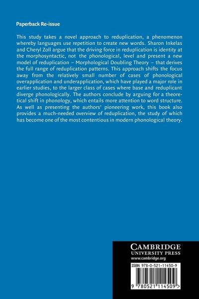 '... [Inkelas and Zoll] should ... be applauded for their discussion and analysis of both classic and less well-known reduplication patterns. Calling the field's attention to some of these sources of data and the importance of specific patterns is invaluable.' Journal of Linguistics