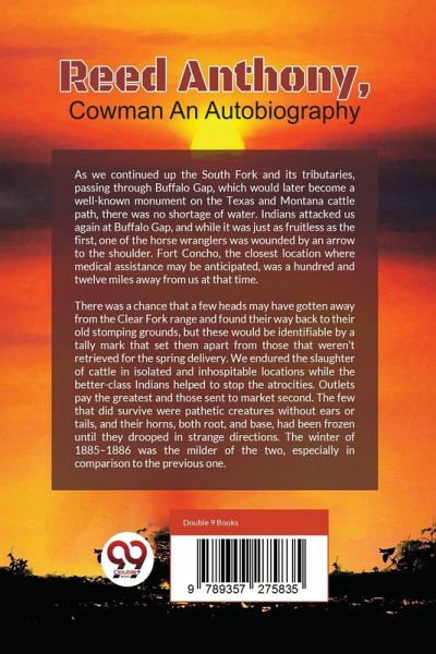 As we continued up the South Fork and its tributaries, passing through Buffalo Gap, which would later become a well-known monument on the Texas and Montana cattle path, there was no shortage of water. Indians attacked us again at Buffalo Gap, and while it was just as fruitless as the first, one of the horse wranglers was wounded by an arrow to the shoulder. Fort Concho, the closest location where medical assistance may be anticipated, was a hundred and twelve miles away from us at that time. There was a chance that a few heads may have gotten away from the Clear Fork range and found their way…mehr