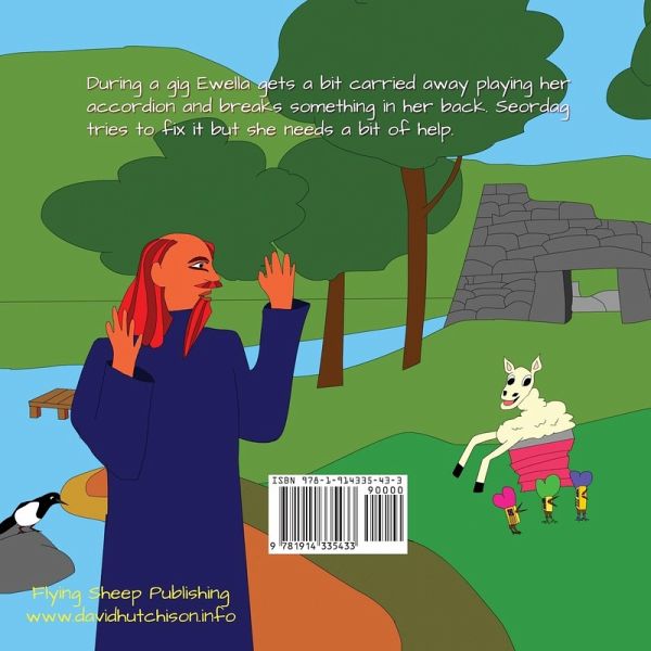 During a gig Ewella the Accordion Sheep gets a bit carried away playing and breaks something in her back. Seordag tries to fix it but she needs a bit of help. Book 9 in the Seordag Stories series.