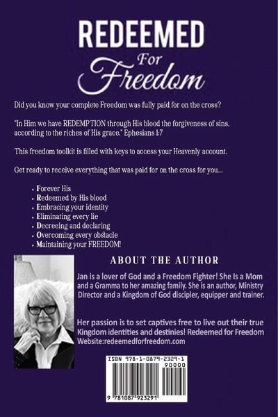 Did you know your complete Freedom was fully paid for on the cross? "In Him we have REDEMPTION through His blood the forgiveness of sins, according to the riches of His grace." Ephesians 1:7 This freedom toolkit is filled with keys to access your Heavenly account. Get ready to receive everything that was paid for on the cross for you.... ¿Forever His ¿Redeemed by His blood ¿Embracing your identity ¿Eliminating every lie ¿Decreeing and declaring ¿Overcoming every obstacle ¿Maintaining your FREEDOM!