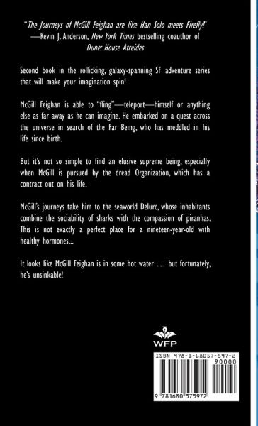 Second book in the rollicking, galaxy-spanning SF adventure series that will make your imagination spin! McGill Feighan is able to "fling"-teleport-himself or anything else as far away as he can imagine. He embarked on a quest across the universe in search of the Far Being, who has meddled in his life since birth. But it's not so simple to find an elusive supreme being, especially when McGill is pursued by the dread Organization, which has a contract out on his life. McGill's journeys take him to the seaworld Delurc, whose inhabitants combine the sociability of sharks with the compassion of piranhas. This is not exactly a perfect place for a nineteen-year-old with healthy hormones... It looks like McGill Feighan is in some hot water...but fortunately, he's unsinkable!