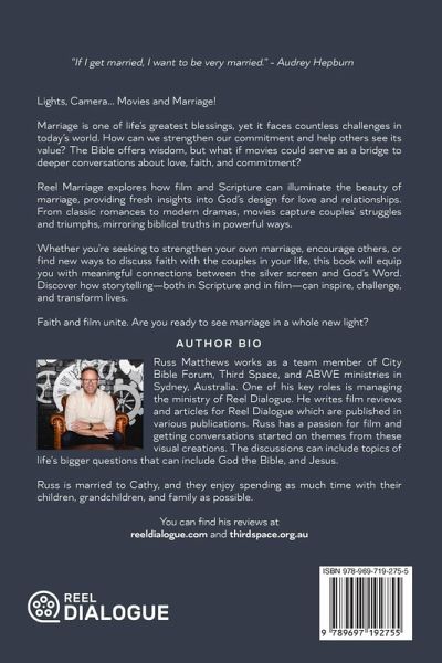 "If I get married, I want to be very married." ~ Audrey Hepburn Spoiler Alert - In recent accounts of Finn Rowan and Dillan Quade, at the conclusion of the book, The Word Becomes Film, would lead many to believe that this was the final chapter of the film reviewer's days. Yet, this is not the case. Finn had many more stories from his active life leading up to his friendship with Dillan. Much of his wisdom came from conversations and friendships with others who had entered his life at different times. Traveling back in time - Instead of leaving those stories forgotten in the past, we thought it would be better to use the time-traveling machine of memories to share these tales. Finn and Lis had the honor of serving in different capacities through their works that involved film and the church. Each of these accounts had a personal impact on this couple and resulted in varied results despite similar intersections through cinema, coffee shops, and families' homes. Some may wonder why we would look back on the life of this couple, but once you get reintroduced to them, it will quickly become evident. To allow their history to be forgotten would be a travesty, and the hope would be for each reader to benefit from their conversations and friendships. Consider this book as less of a prequel to the original tale and see it as a means of adding color to the extensive artwork representing their lives. The richness of these narratives will unfold before your eyes. At the same time, each will fill the gaps left behind by the initial introduction to the Rowans. Reel Marriage explores how film and Scripture can illuminate the beauty of marriage, providing fresh insights into God's design for love and relationships. From classic romances to modern dramas, movies capture couples' struggles and triumphs, mirroring biblical truths in powerful ways. Whether you're seeking to strengthen your own marriage, encourage others, or find new ways to discuss faith with the couples in your life, this book will equip you with meaningful connections between the silver screen and God's Word. Discover how storytelling-both in Scripture and in film-can inspire, challenge, and transform lives. Faith and film unite. Are you ready to see marriage in a whole new light?