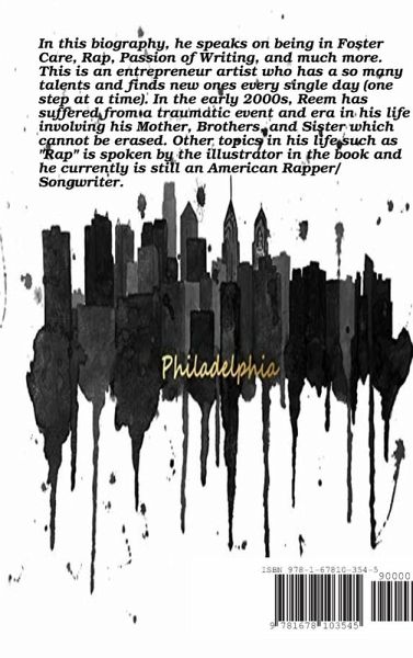 This book is a splendid Biography of the Upcoming Artist Reem Da Illist. In this biography, he speaks on being in Foster Care, Rap, Passion of Writing, and much more. This is an entrepreneur artist who has a so many talents and finds new ones every single day (one step at a time). In the early 2000s, Reem has suffered from a traumatic event and era in his life involving his Mother, Brothers, and Sister which cannot be erased. Other topics in his life such as "Rap" is spoken by the illustrator in the book and he currently is still an American Rapper/Songwriter. My book (biography) is written so fluently and elegantly that you would never believe that I'm 18 year old. God is Good.