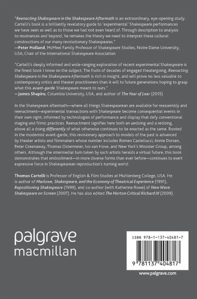 In the Shakespeare aftermath-where all things Shakespearean are available for reassembly and reenactment-experimental transactions with Shakespeare become consequential events in their own right, informed by technologies of performance and display that defy conventional staging and filmic practices. Reenactment signifies here both an un doing and a re doing, above all a doing differently of what otherwise continues to be enacted as the same. Rooted in the modernist avant-garde, this revisionary approach to models of the past is advanced by theater artists and filmmakers whose number includes Romeo Castellucci, Annie Dorsen, Peter Greenaway, Thomas Ostermeier, Ivo van Hove, and New York's Wooster Group, among others. Although the intermedial turn taken by such artists heralds a virtual future, this book demonstrates that embodiment-in more diverse forms than ever before-continues to exert expressive force in Shakespearean reproduction's turning world.