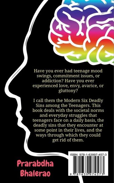Have you ever had teenage mood swings, commitment issues, or addiction? Have you ever experienced love, envy, avarice, or gluttony? I call them the Modern Six Deadly Sins among the Teenagers. This book deals with the societal norms and everyday struggles that teenagers face on a daily basis, the deadly sins that they encounter at some point in their lives, and the ways through which they could get rid of them. This book is a perfect read for anyone who is interested in the pressing issues in the lives of teenagers and how to overcome them. Let the Journey Begin!