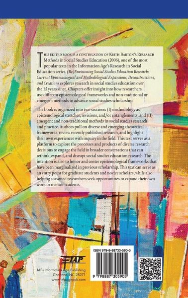 This edited book is a continuation of Keith Barton's Research Methods in Social Studies Education (2006), one of the most popular texts in the Information Age's Research in Social Education series. (Re)Envisioning Social Studies Education Research: Current Epistemological and Methodological Expansions, Deconstructions, and Creations explores research in social studies education over the 15 years since. Chapters offer insight into how researchers use different epistemological frameworks and non-traditional or emergent methods to advance social studies scholarship. The book is organized into two sections: (1) methodology as epistemological stretches, revisions, and/or entanglements; and (2) emergent and non-traditional methods in social studies research and practice. Authors pull on diverse and emerging theoretical frameworks, review recently published research, and highlight their own experiences with inquiry in the field. This text serves as a platform to explore the processes and products of diverse research decisions to engage the field in broader conversations that can rethink, expand, and disrupt social studies education research. The intention is also to honor and center epistemological frameworks that have been marginalized in previous scholarship. This text can serve as an entry point for graduate students and novice scholars, while also helping seasoned researchers seek opportunities to expand their own work or mentor students.