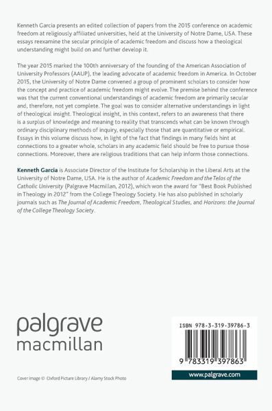 The year 2015 marked the 100th anniversary of the founding of the American Association of University Professors (AAUP), the leading advocate of academic freedom in America. In October 2015, the University of Notre Dame convened a group of prominent scholars to consider how the concept and practice of academic freedom might evolve. The premise behind the conference was that the current conventional understandings of academic freedom are primarily secular and, therefore, not yet complete. The goal was to consider alternative understandings in light of theological insight. Theological insight, in this context, refers to an awareness that thereis a surplus of knowledge and meaning to reality that transcends what can be known through ordinary disciplinary methods of inquiry, especially those that are quantitative or empirical. Essays in this volume discuss how, in light of the fact that findings in many fields hint at connections to a greater whole, scholars in any academic field should be free to pursue those connections. Moreover, there are religious traditions that can help inform those connections.