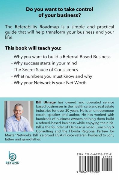 Do you want to take control of your business? The Referability Roadmap is a simple and practical guide that will help transform your business and your life!Why you want to build a Referral Based Business Why success starts in your mind The Secret Sauce of Consistency What numbers you must know and why Why your Network is your Net Worth Bill Utnage has owned and operated service based businesses in the health care and real estate industries for over 30 years. He is a coach, speaker and author. Bill is the founder of Damascus Road Coaching & Consulting and the Florida Regional Partner for Master Networks. Bill is a proud US Air Force veteran, a husband to Joni, father and grandfather.