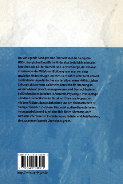 Der vorliegende Band gibt eine Übersicht über die häufigsten HNO-chirurgischen Eingriffe im Kindesalter. Lediglich in schmalen Bereichen, wie z. B. der Tracheal- und Larynxchirurgie, der Choanalatresien oder der Mittelohrmißbildung kann man von einer speziellen Kinderchirurgie sprechen. Es ist daher sicher nicht sinnvoll, die Kinderchirurgie des Faches von der allgemeinen HNO-ärztlichen Chirurgie abzutrennen, da in vielen Bereichen die Erfahrung im wesentlichen an Erwachsenen gewonnen wird. Dennoch bestehen bei Kindern Besonderheiten in Anatomie, Physiologie, Immunologie und damit der Indikation im einzelnen. Eine enge Kooperation mit dem Pädiater, dem Anästhesisten und den Nachbarfächern ist häufig erforderlich. Ziel dieses Bandes ist es, diese Besonderheiten herauszuarbeiten und damit dem Hals-Nasen-Ohrenarzt, aber auch dem interessierten Kieferchirurgen, Pädiater und Anästhesisten, eine zusammenfassende Übersicht zu geben.