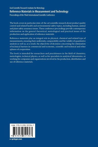 The book covers in particular state-of-the-art scientific research about product quality control and related health and environmental safety topics, including human, animal and plant safety assurance issues. These conference proceedings provide contemporary information on the general theoretical, metrological and practical issues of the production and application of reference materials.