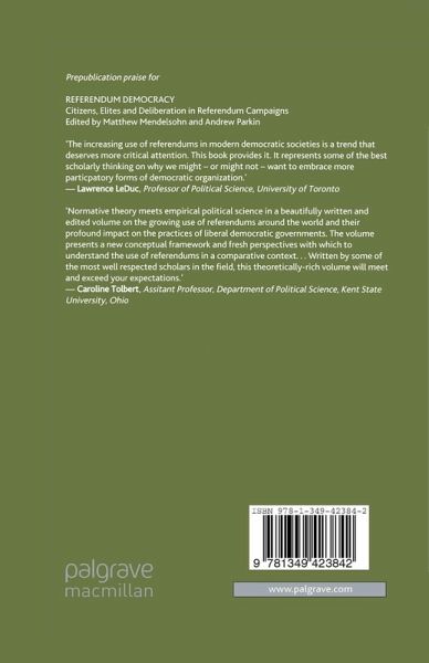'[A] beautifully written edited volume on the growing use of referendums around the world and their profound impact on the practice of liberal democratic governments...Written by some of the most well-respected scholars in the field, this theoretically rich volume will meet and exceed your expectations.' - Caroline J. Tolbert, Assistant Professor, Department of Political Science, Kent State University