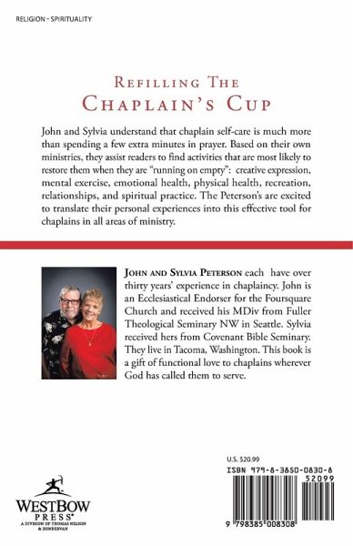 John and Sylvia understand that chaplain self-care is much more than spending a few extra minutes in prayer. Based on their own ministries, they assist readers to find activities that are most likely to restore them when they are "running on empty": creative expression, mental exercise, emotional health, physical health, recreation, relationships, and spiritual practice.