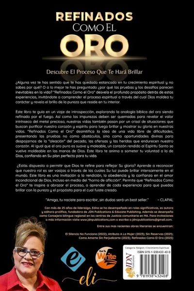 ¿Alguna vez te has sentido que te has quedado estancado en tu crecimiento espiritual y no sabes por qué? O a lo mejor te has preguntado ¿por qué las pruebas y los desafíos parecen inevitables en la vida? "Refinados Como el Oro" desvela el profundo propósito detrás de estas experiencias, invitándote a comprender el proceso espiritual a través del cual Dios moldea tu carácter y revela el brillo de la pureza que reside en tu interior. Este libro te guía en un viaje de introspección, explorando la analogía bíblica del oro siendo refinado por el fuego. Así como las impurezas deben ser quemadas para revelar el valor intrínseco del metal precioso, nuestras vidas también pasan por un crisol de situaciones que buscan purificar nuestro corazón y espíritu para luego brillar y mostrar su gloria en nuestras vidas. "Refinados Como el Oro" desmitifica la idea de una vida libre de dificultades, presentando las pruebas no como obstáculos, sino como oportunidades divinas para despojarnos de la "aleación" del pecado, las ofensas y las heridas que endurecen nuestro corazón. Al igual que el oro puro es suave y maleable, un corazón rendido al Espíritu Santo se vuelve moldeable en las manos de Dios. Este libro te anima a someter tu voluntad a la de Dios, confiando en Su plan perfecto para tu vida. ¿Estás dispuesto a permitir que Dios te refine para reflejar Su gloria? Aprende a reconocer que nuestro rol es ser vasijas a través de las cuales Su luz puede brillar intensamente en el mundo. Este libro es una invitación a la rendición, la obediencia y la confianza en el amor incondicional de Dios, incluso en medio del "horno de aflicción". Permite que "Refinados Como el Oro" te inspire a abrazar el proceso, a aprender de cada experiencia para que puedas brillar con la pureza y el propósito para el cual fuiste creado. "Amiga, tu naciste para escribir, sin dudas será un best seller." ~ CLAPAL
