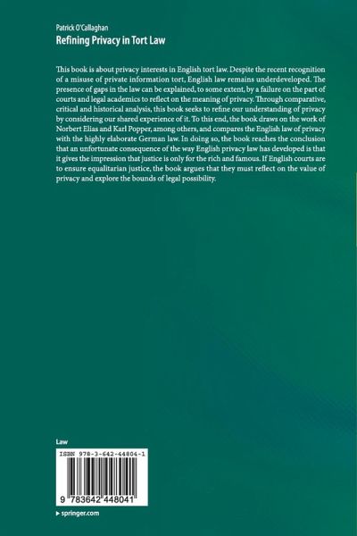 This book is about privacy interests in English tort law. Despite the recent recognition of a misuse of private information tort, English law remains underdeveloped. The presence of gaps in the law can be explained, to some extent, by a failure on the part of courts and legal academics to reflect on the meaning of privacy. Through comparative, critical and historical analysis, this book seeks to refine our understanding of privacy by considering our shared experience of it. To this end, the book draws on the work of Norbert Elias and Karl Popper, among others, and compares the English law of privacy with the highly elaborate German law. In doing so, the book reaches the conclusion that an unfortunate consequence of the way English privacy law has developed is that it gives the impression that justice is only for the rich and famous. If English courts are to ensure equalitarian justice, the book argues that they must reflect on the value of privacy and explore the bounds of legal possibility.