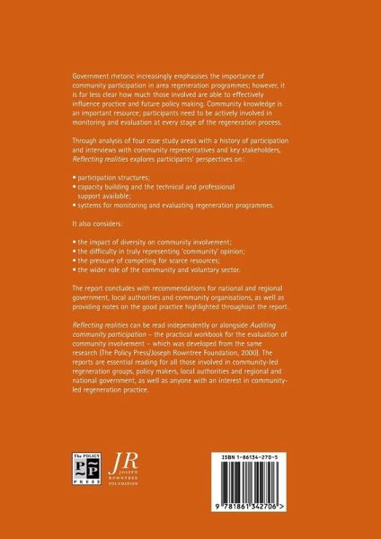 Reflecting realities explores participants' perspectives on participation structures; capacity building and the technical and professional support available; and systems for monitoring and evaluating regeneration programmes. The report includes recommendations for national and regional government, local authorities and community organisations.