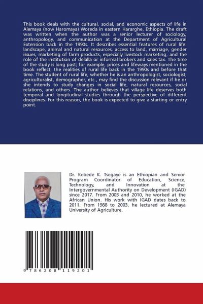 This book deals with the cultural, social, and economic aspects of life in Alemaya (now Haromaya) Woreda in eastern Hararghe, Ethiopia. The draft was written when the author was a senior lecturer of sociology, anthropology, and communication at the Department of Agricultural Extension back in the 1990s. It describes essential features of rural life: landscape, animal and natural resources, access to land, marriage, gender issues, marketing of farm products, especially livestock marketing, and the role of the institution of delalla or informal brokers and sales tax. The time of the study is long past; for example, prices and lifeways mentioned in the book reflect, the realities of rural life back in the 1990s and before that time. The student of rural life, whether he is an anthropologist, sociologist, agriculturalist, demographer, etc., may find the discussion relevant if he or she intends to study changes in social life, natural resources, social relations, and others. The author believes that village life deserves both temporal and longitudinal studies through the perspective of different disciplines. For this reason, the book is expected to give a starting or entry point.