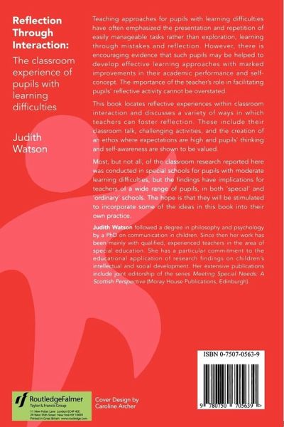First Published in 1996. Teaching approaches for pupils with learning difficulties have often emphasized the presentation and repetition of easily manageable tasks rather than exploration, learning through mistakes and reflection. However, there is encouraging evidence that such pupils may be helped to develop effective learning approaches with marked improvements in their academic performance and self-concept. The importance of the teacher's role in facilitating pupils' reflective activity cannot be overstated. This book locates reflective experiences within classroom interaction and discusses a variety of ways in which teachers can foster reflection. These include their classroom talk, challenging activities, and the creation of an ethos where expectations are high and pupils' thinking and self-awareness are shown to be valued. Most, but not all, of the classroom research reported here was conducted in special schools for pupils with moderate learning difficulties, but the findings have implications for teachers of a wide range of pupils, in both â¿¿special' and â¿¿ordinary' schools. The hope is that they will be stimulated to incorporate some of the ideas in this book into their own practice.