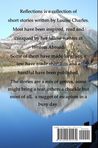 Reflections is a collection of short stories written by Louise Charles. Most have been inspired, read and critiqued by her fellow writers at Writers Abroad. Some of them have made longlists; a few have made shortlists and a handful have been published. The stories are a mix of genres, some might bring a tear, others a chuckle but most of all, a nugget of escapism in a busy day.