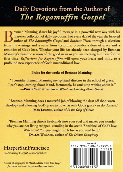 Brennan Manning shares his joyful message in a powerful new way with his first-ever collection of daily devotions. For every day of the year the beloved author of "Ragamuffin Gospel" and "The Boy Who Cried Abba" offers a verse of scripture, and each day's mediation is completed with a complementary reading from his own writings. Whether your life has already changed by Brennan Manning's dynamic version of the good news or you are meeting him here for the first time, "Reflections for Ragamuffins" will open your mind and heart to a profound new experience of God's unconditional love.