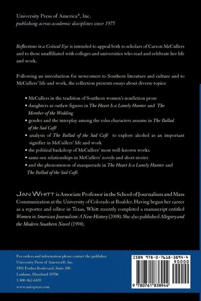 Reflections in a Critical Eye is intended to appeal both to scholars of Carson McCullers and to those unaffiliated with colleges and universities who read and celebrate her life and work.