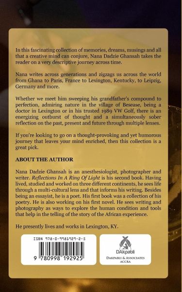 Right from the Prologue where we are introduced to the 'Ring of the Light' Nana shows us that he is about to take us on a journey into epiphany. And he is unrelentless. In essay after essay, story after story, line after line, precept after precept, Nana takes us from one moment of sudden revelation into another moment of unexpected insight. We meet his grandpa, Maapa, who demanded excellence even in the most mundane of activities - sweeping the compound. But Nana's admiration of this man is buried in imagery and a simile. Maapa inspected work like "inspected it like a jeweler inspected a diamond." Attention to detail. Clearly rubbed off Nana. Thus whether his epiphanic trip takes us to Besease or Lexington through Leipzig, he shows great attention to detail. We meet his Dad from who made death look and seem welcome to Nana. Dignity in death, a lesson learned from Dad's life. So Nana walks away from the morgue where Dad's body was, convinced in one breath that Dad's deep faith had helped him deal with death. Yet with the very next intake of air, Nana concludes that "there's nothing like eternal life." "We must all die! Accept it!" he screams. We also meet Mum, to whom he wrote long letters and each of which she still keeps. It was Mum who told him the story in the essay "Do It Well" about the builder who had built several houses for a rich man. But having been hired and paid to build another house with the best material he could find, he chose, being actuated by malice, bitterness and ill-will, to use the cheapest of materials, to lay a feeble foundation with weak walls, and to install a roof that shook and windows that clattered when the wind blew. "It was his worst work." To his shock, the rich man decided to reward him with that building. "I should have built this well!" The stories that only mums can construct! In "The Unmarked Trail", easily my most favorite chapter, Nana challenges us to be curious and adventurous. Curiosity might have killed the cat, but Nana says if you seek to find and understand who you are, your place in the universe and your mission in life, then you must take that unmarked trail. Don't expect well-beaten and conspicuous paths. In "The Journey" Nana says there is great peace and harmony if each traveler treats the other as they want to be treated. I find myself asking, what happens if I treat myself like crap? Would that justify my treating others like crap? And would there be great peace and harmony then? As if he senses my confusion, he provides an answer: the journey involves clearing the path, keeping the lonely company, feeding the hungry, healing the sick, redirecting the lost, protecting the weak and helping people find their destinations. But, Nana, did you say "clearing the path?" I thought the best trails were unmarked? Or do you mean that once we take the unmarked trails, we should clear them as a path for those following? Throughout the book, you will be blown away by his sheer mastery of history and literature. He recounts several historical tales and events and backs them with his sources. He also shows his medical side in the several essays that refer to his chosen profession and the lessons he learns by simply being a doctor.