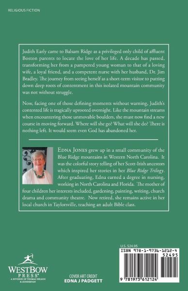 Judith Early came to Balsam Ridge, as a privileged only child of affluent Boston parents to locate the love of her life. A decade has passed transforming her from a pampered young woman to that of a loving wife, a loyal friend, and a competent nurse with her husband Dr. Jim Bradley. The journey from seeing herself as a short-term visitor to putting down deep roots of contentment in this isolated, mountain community was not without struggle. Now, facing one of those defining moments, without warning Judiths contented life is tragically uprooted overnight. Like the mountain streams when encountering those unmovable boulders, she must now find a new course in moving forward. Where will she go? What will she do? There is nothing left. It would seem even God has abandoned her.