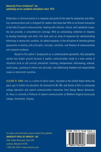 Reflections in Communication is a response to the need for productive and effective communication and is designed for readers who have had little or no formal instruction in the field of speech communication. Dealing with cultural, critical, and contextual issues, the text provides comprehensive coverage of topics in speech communication.