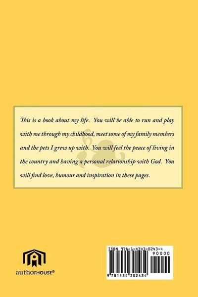 This is a book about my life. You will be able to run and play with me through my childhood, meet some of my family members and the pets I grew up with. You will feel the peace of living in the country and having a personal relationship with God. You will find love, humour and inspiration in these pages.