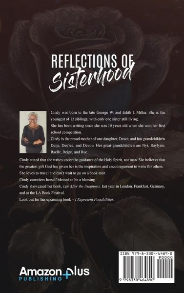 Cindy was born to the late George W. and Edith I. Miller. She is the youngest of 12 siblings, with only one sister still living. She has been writing since she was 10 years old when she won her first school competition. Cindy is the proud mother of one daughter, Dawn, and has grandchildren Deija, Des'ree, and Devon. Her great-grandchildren are Nyi, Raylynn, Raelle, Reign, and Rue. Cindy stated that she writes under the guidance of the Holy Spirit, not man. She believes that the greatest gift God has given her is the inspiration and encouragement to write for others. She loves to travel and can't wait to go on a book tour. Cindy considers herself blessed to be a blessing. Cindy showcased her book, Life After the Diagnosis, last year in London, Frankfurt, Germany, and at the LA Book Festival. Look out for her upcoming book - I Represent Possibilities.