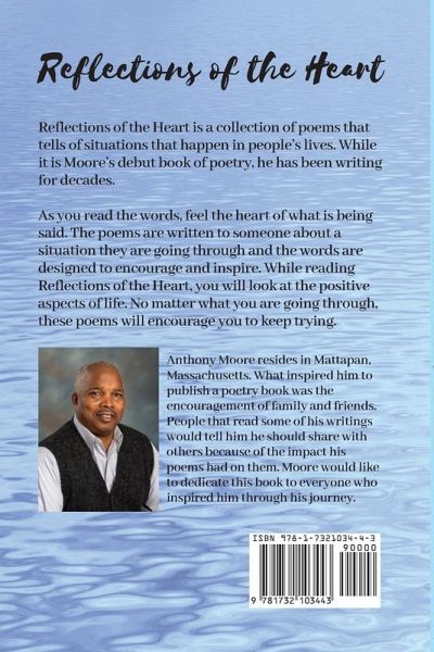 While "Reflections of the Heart" is Anthony Moore's debut book of poetry, he has been writing beautiful poetry for decades. This collection includes poetry about love, beauty, identity, family, and what it means to be alive and loving your life. Throughout his poems, Anthony recognizes the beauty that lies within all of us. He confronts judgement from others. He challenges that what our society thinks is beautiful is really an illusion. Through deftly written poems, he captures the excitement of the first - and second - steps a child takes, the responsibility of a strict but loving father, and the pride of a parent who adores his daughter.